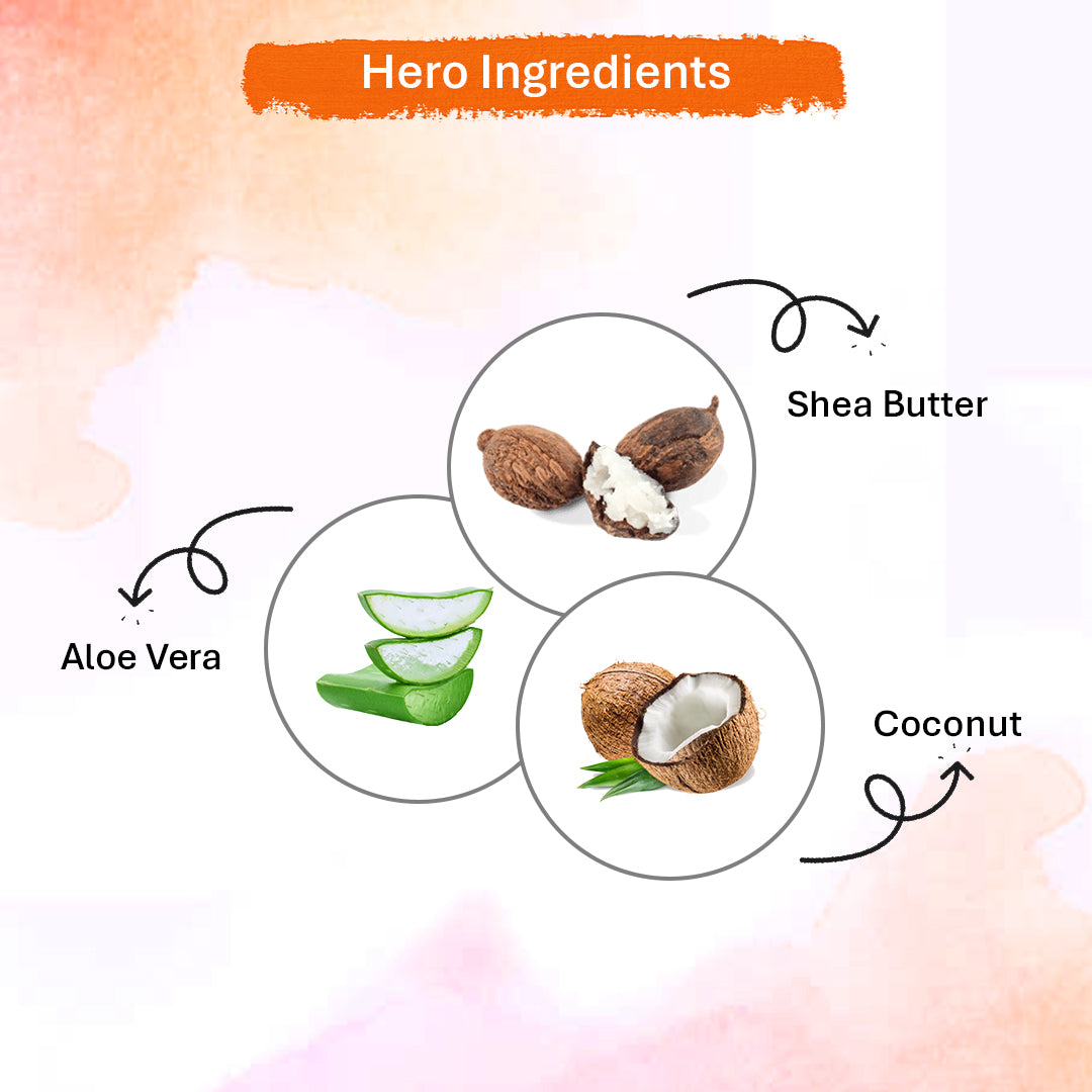 Shea Butter & Aloe Vera: Deliver intense hydration and long-lasting softness without feeling greasy.