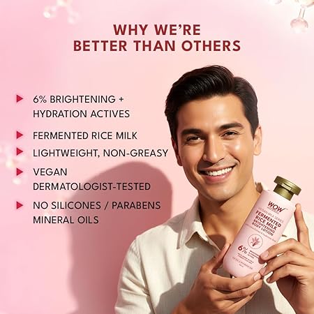 WOW Skin Science Fermented Rice Milk Brightening Body Lotion for Dull and Dehydrated Skin | 6% Brightening and Hydration Actives | Lotus Extract, Hyaluronic Acid, Shea Butter and Collagen | Radiance, Softness and Deep Hydration | 200 ml